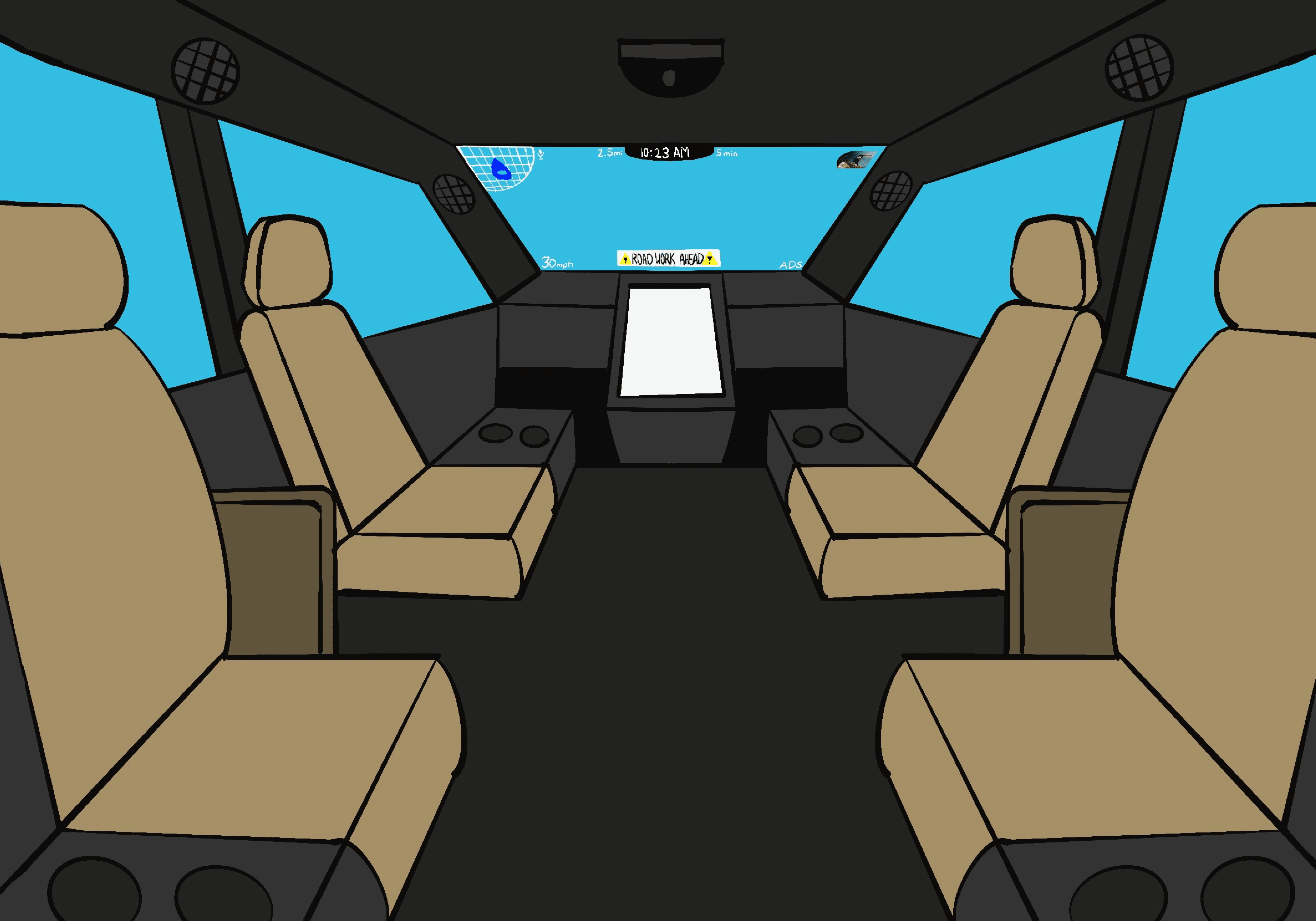 Finally, we can implement all of our research insights and visionary concepts to design a prototype of the ideal AV of the future.